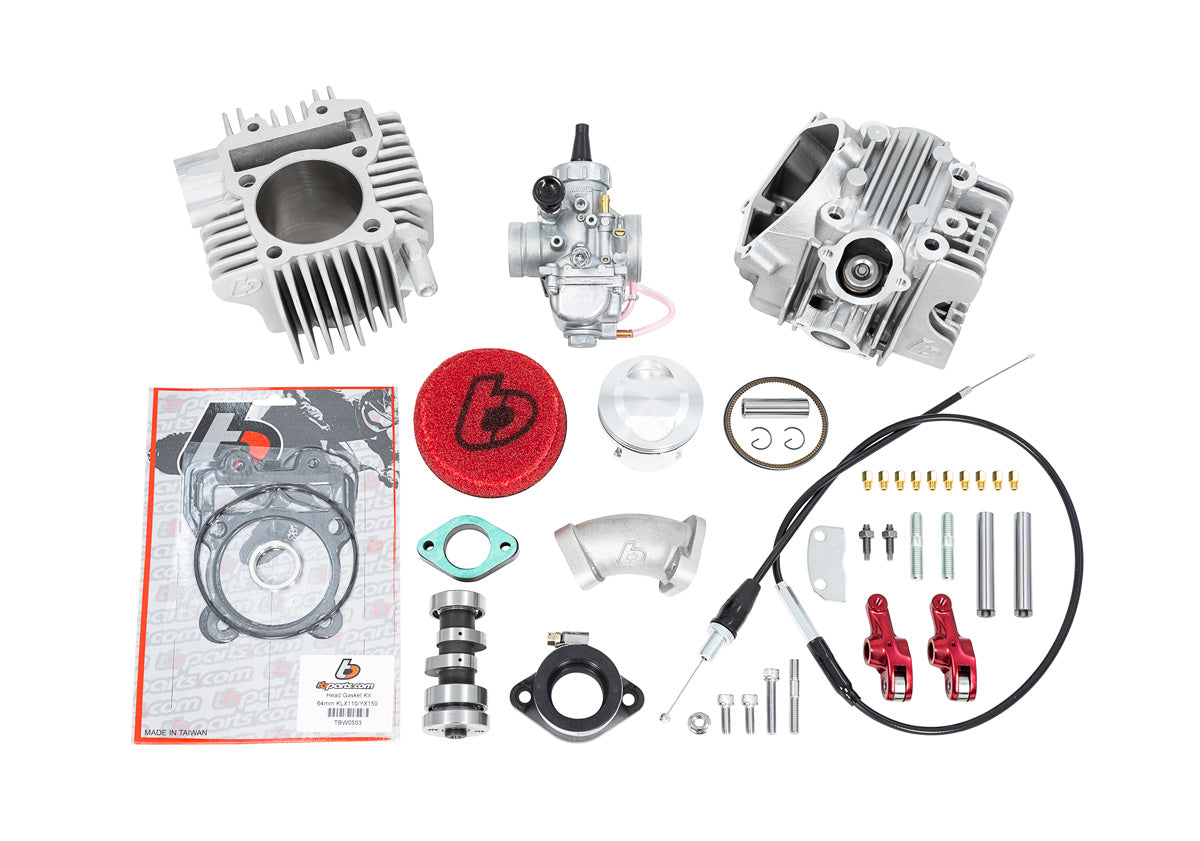 TBparts V2 177-184cc bore kit w/VM26 carb kit for the YX160 and ZS155. Bolt on HUGE power with this performance top end kit. This kit will turn your ZS155 to 177cc or your YX160 to 184cc! These are high quality parts and require no machining to the cases or other modifications – bolt on and go!