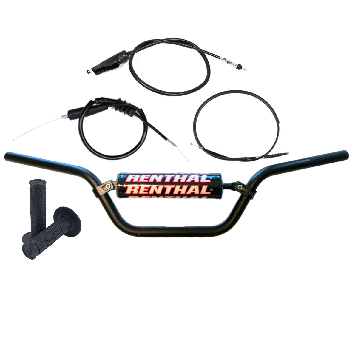Made of the highest quality components available, the T3 bar kit is the most affordable solution for adding taller bars to your pit bike. Below is everything needed for add tall handlebars.