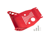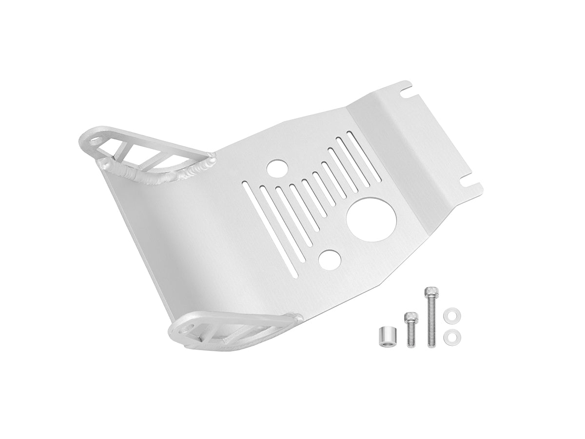 TBparts aluminum skid plate for Kawasaki’s KLX110. Hard anodized with TBparts.com logo laser printed on. Low profile, lightweight, and durable aluminum construction helps protect your engine. Access hole to oil drain bolt. Peg bolt holes are slotted for easy installation. 2 M6 bolts with washers and 1 spacer included for installation.