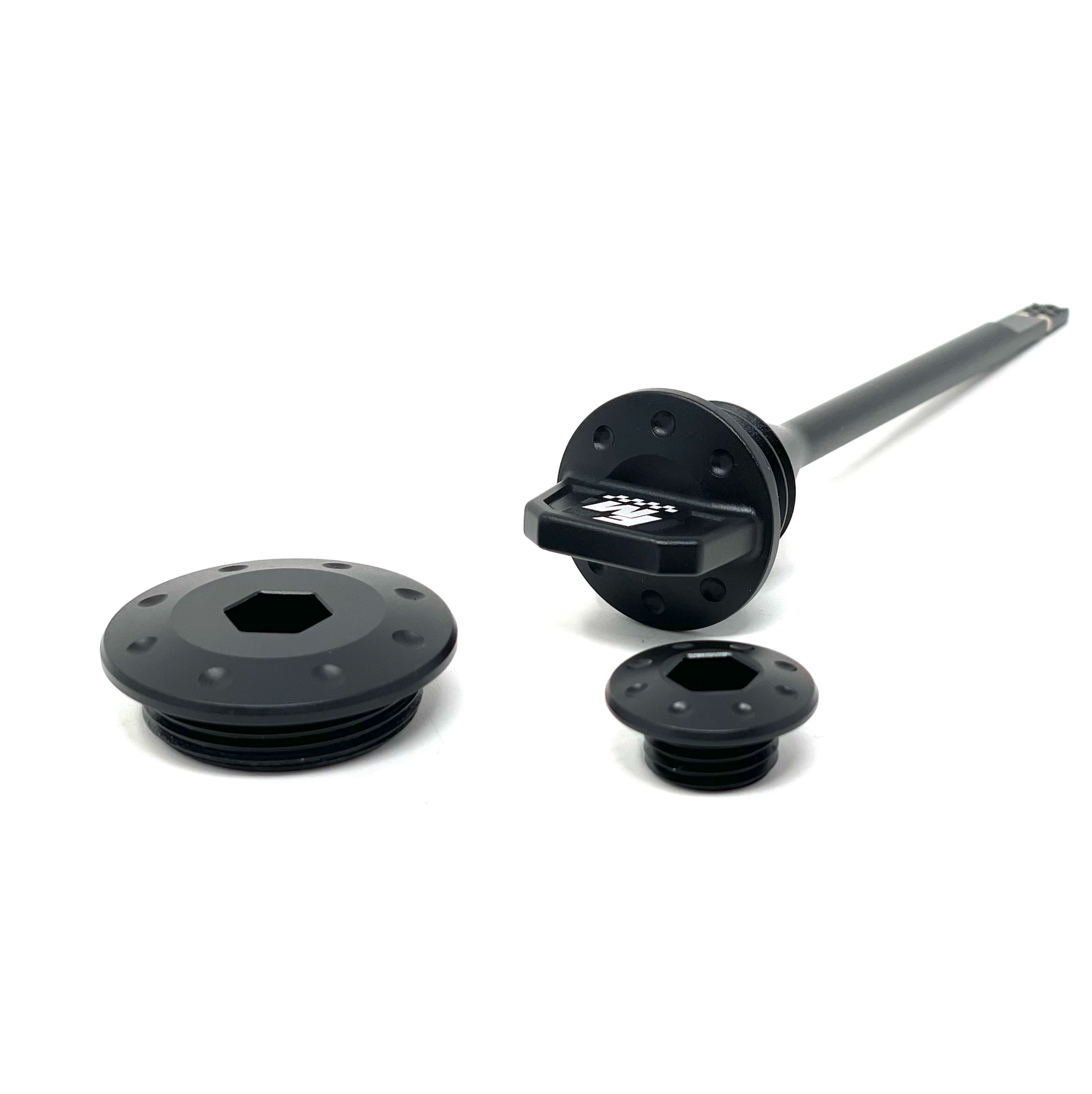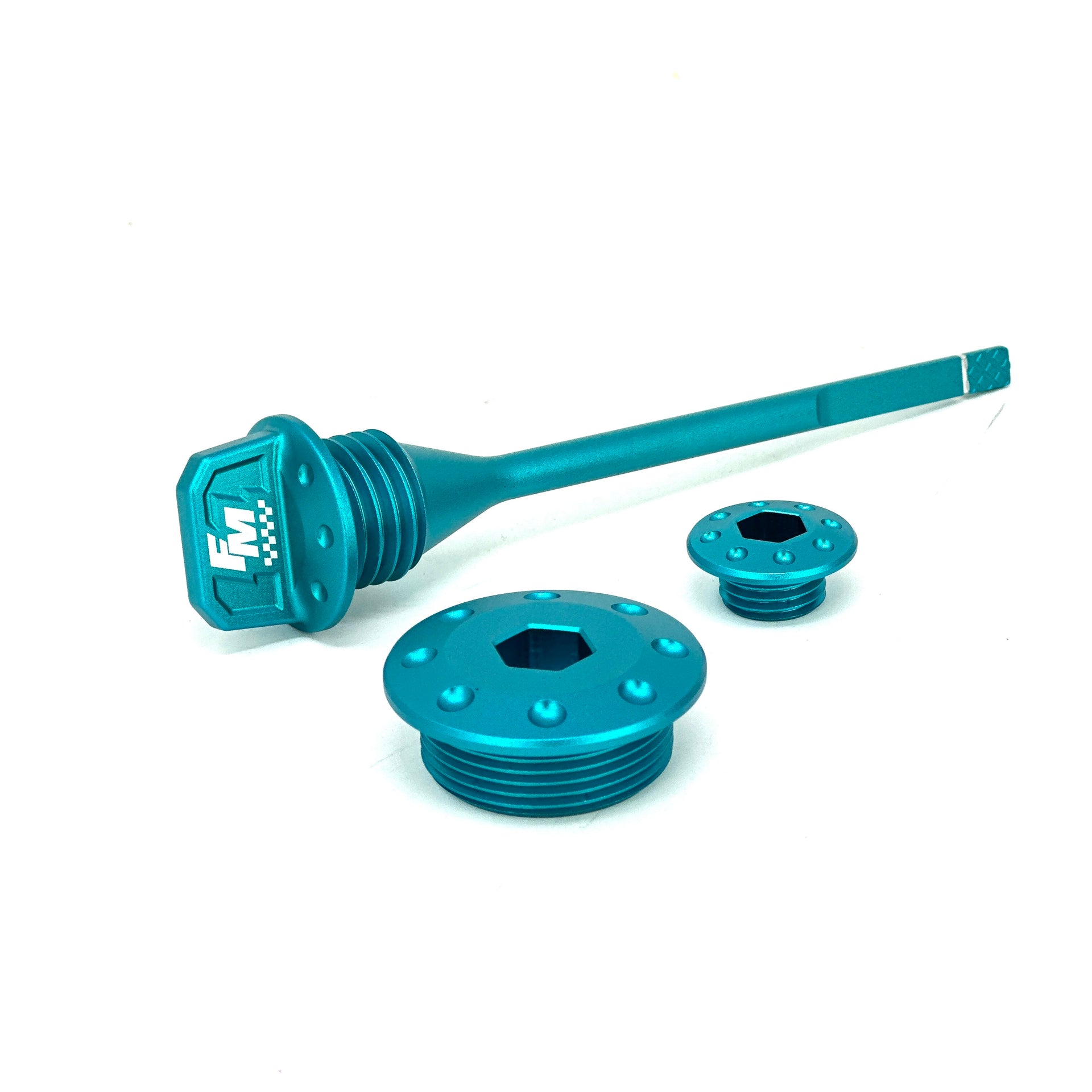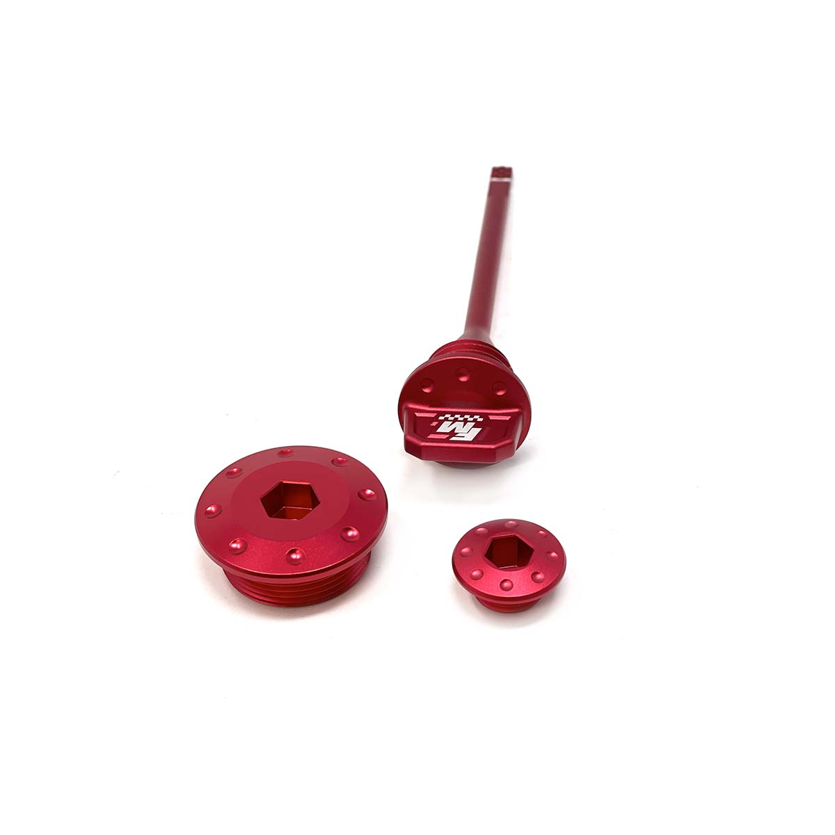 Achieve a professional, race-inspired look on your bike with our FM Billet Dress Up Kit. Crafted from billet aluminum with an anodized finish and laser etched logos, the dipstick is formed from a single piece of aluminum, providing greater stability than two-piece designs.
