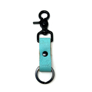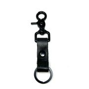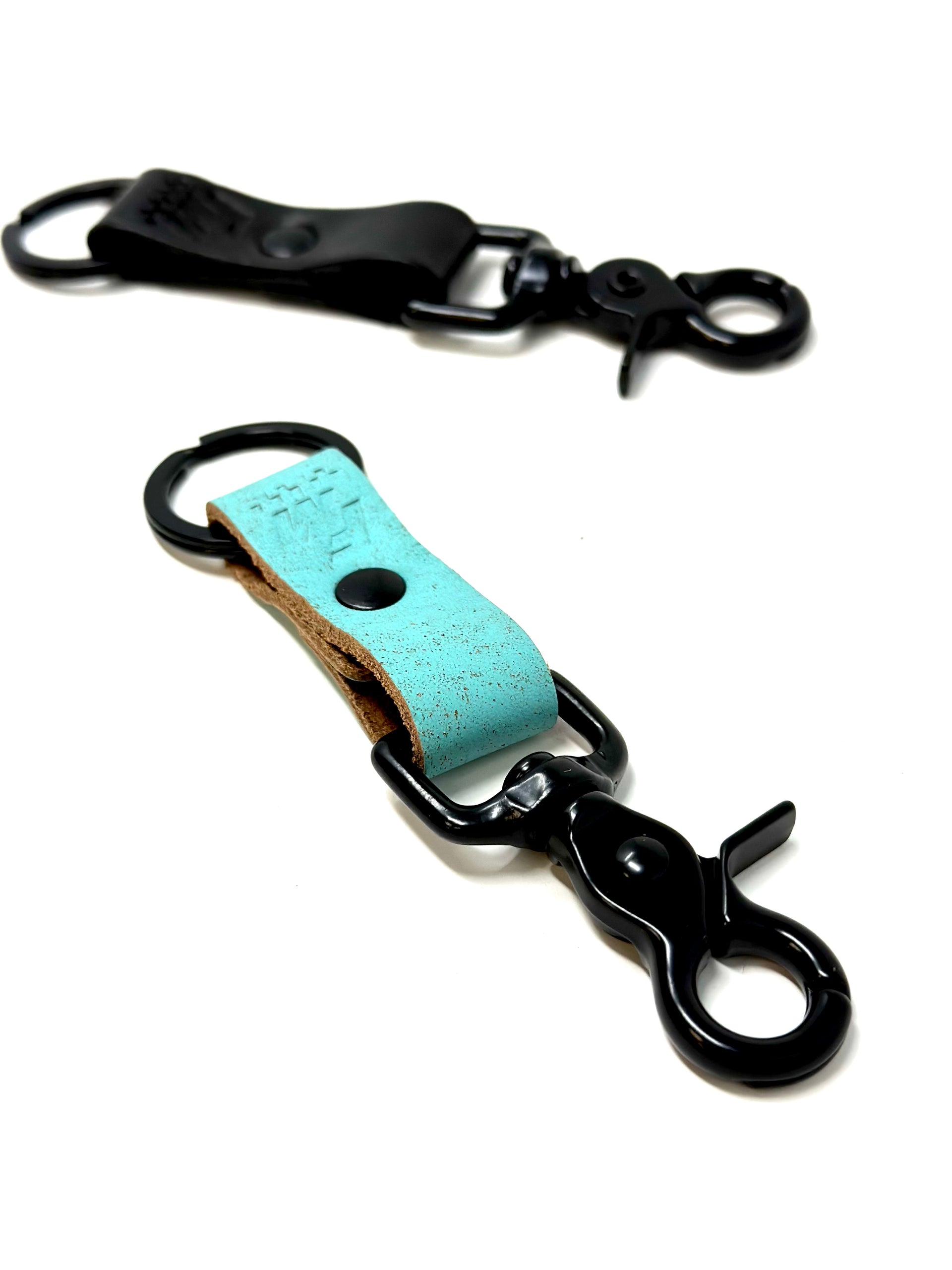 High-quality brass trigger snap and key ring crafted with precision by hand. Genuine 6-7oz vegetable tanned leather has been expertly cut, stamped, treated, and riveted. Conveniently measures 5 inches from the top of clip to the bottom of the ring.