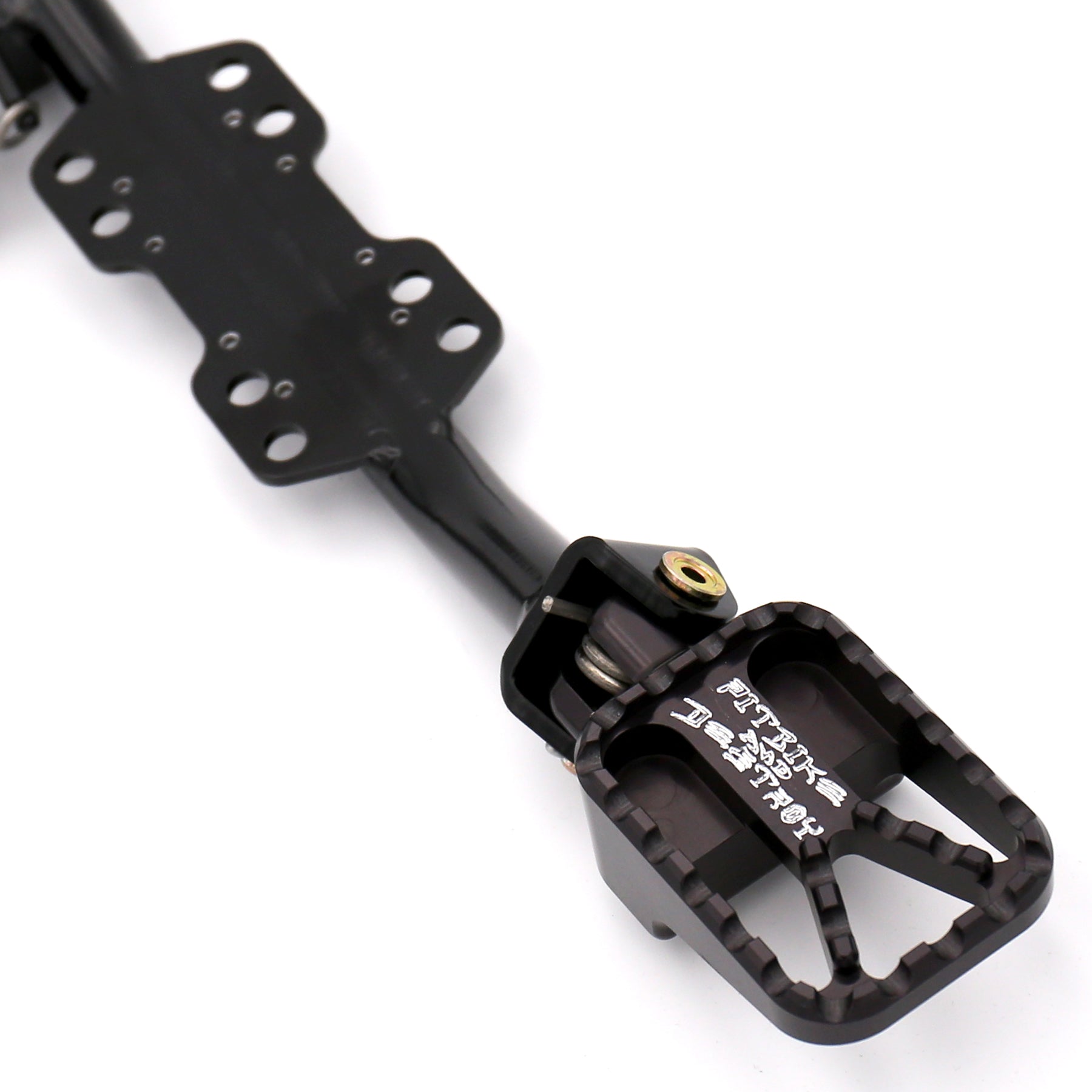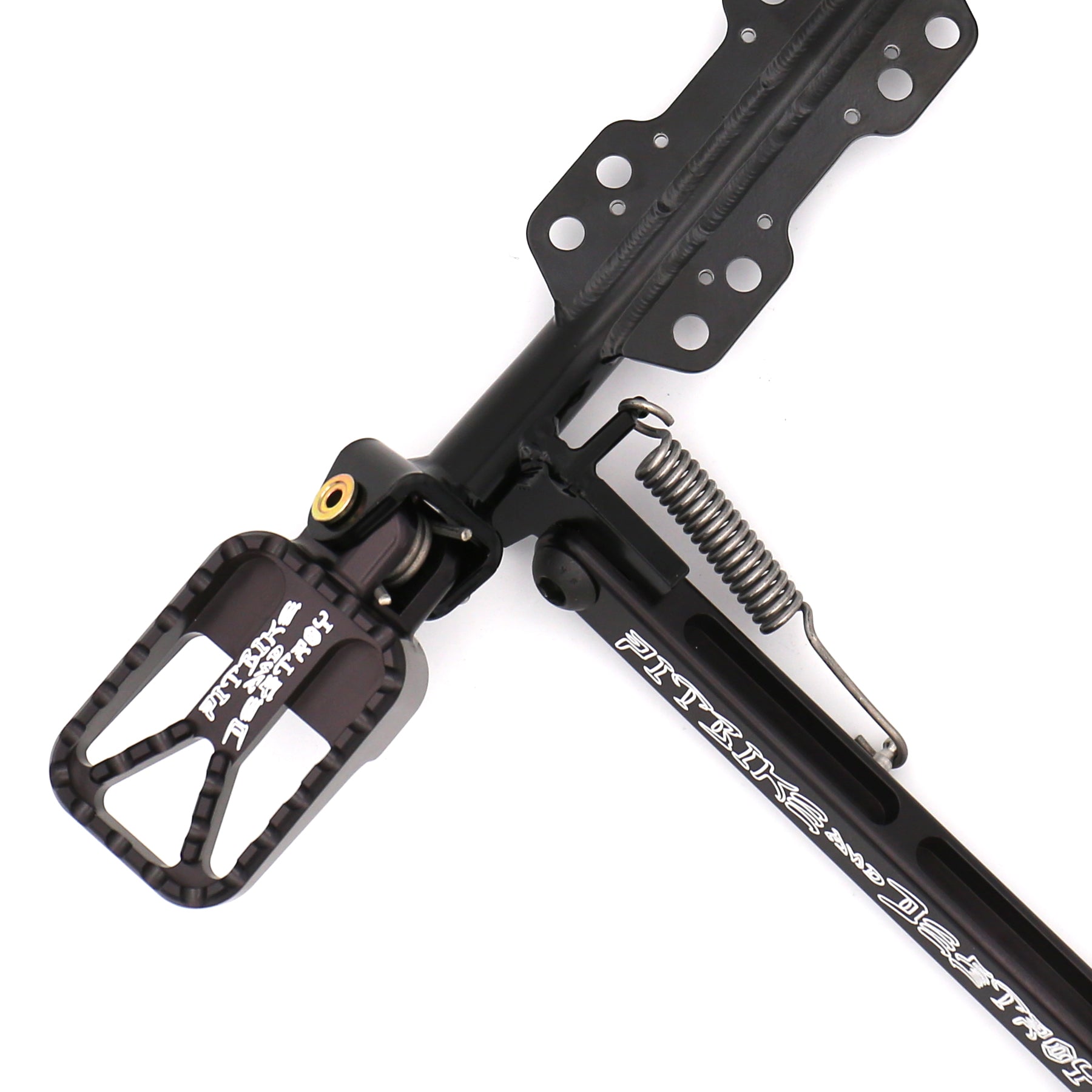 The Pitbike and Destroy Footpeg Kit is quickly and easily assembled and is designed to be bolted on in minutes. It is made with 6061 T6 aluminum foot pegs and kickstand, a high-strength steel foot peg bar, stainless steel springs for foot pegs, a stainless steel heavy-duty kickstand spring, hard anodized aluminum, and a powder-coated steel peg bar. Furthermore, this kit comes with a "LOCK-R" for peg nuts.