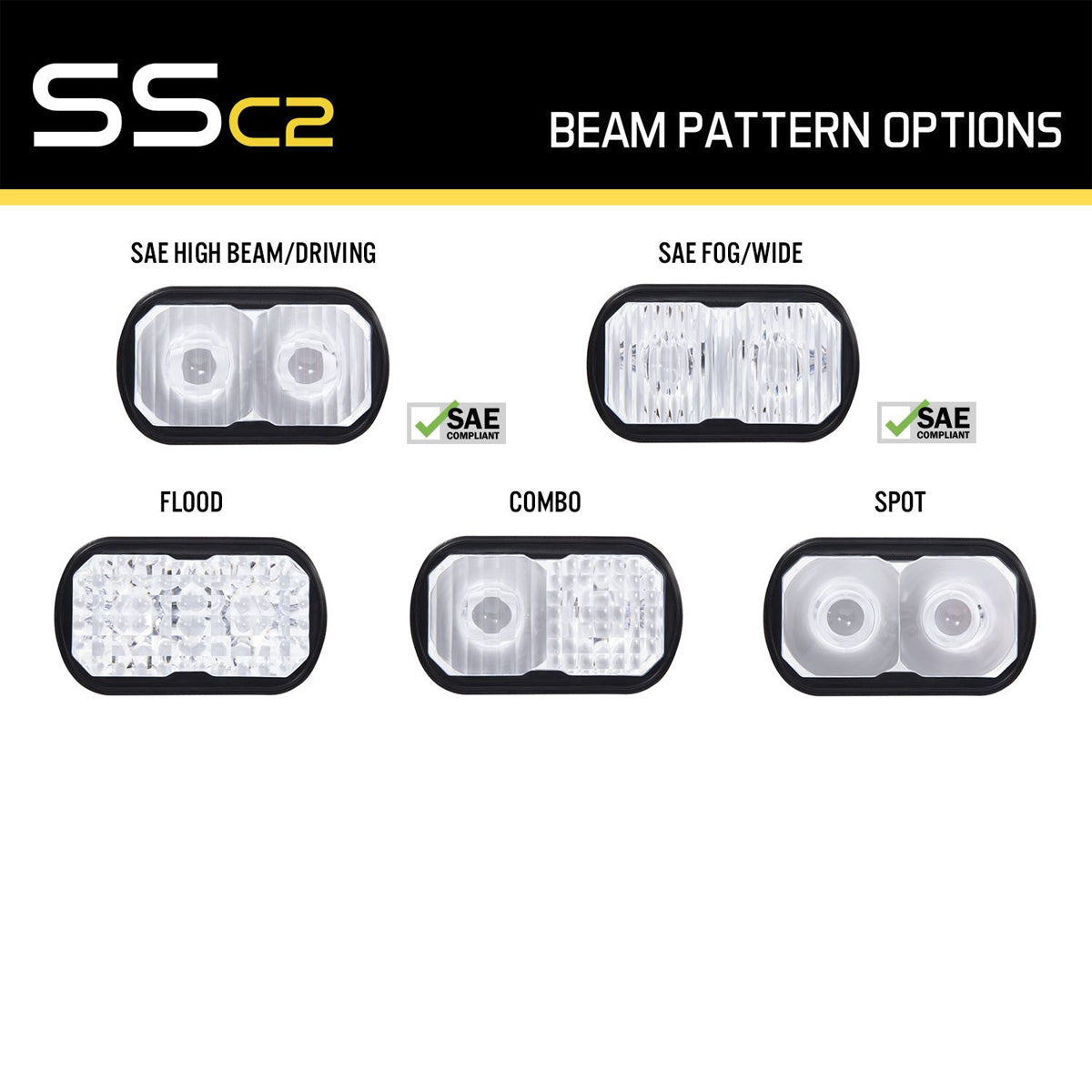 - Combo pattern combines both the Driving and Flood optics. It shines light downrange in a focused, rectangular 40×20 degree pattern. The SSC2 Pod features a single flood optic on one side with a single driving optic on the other.