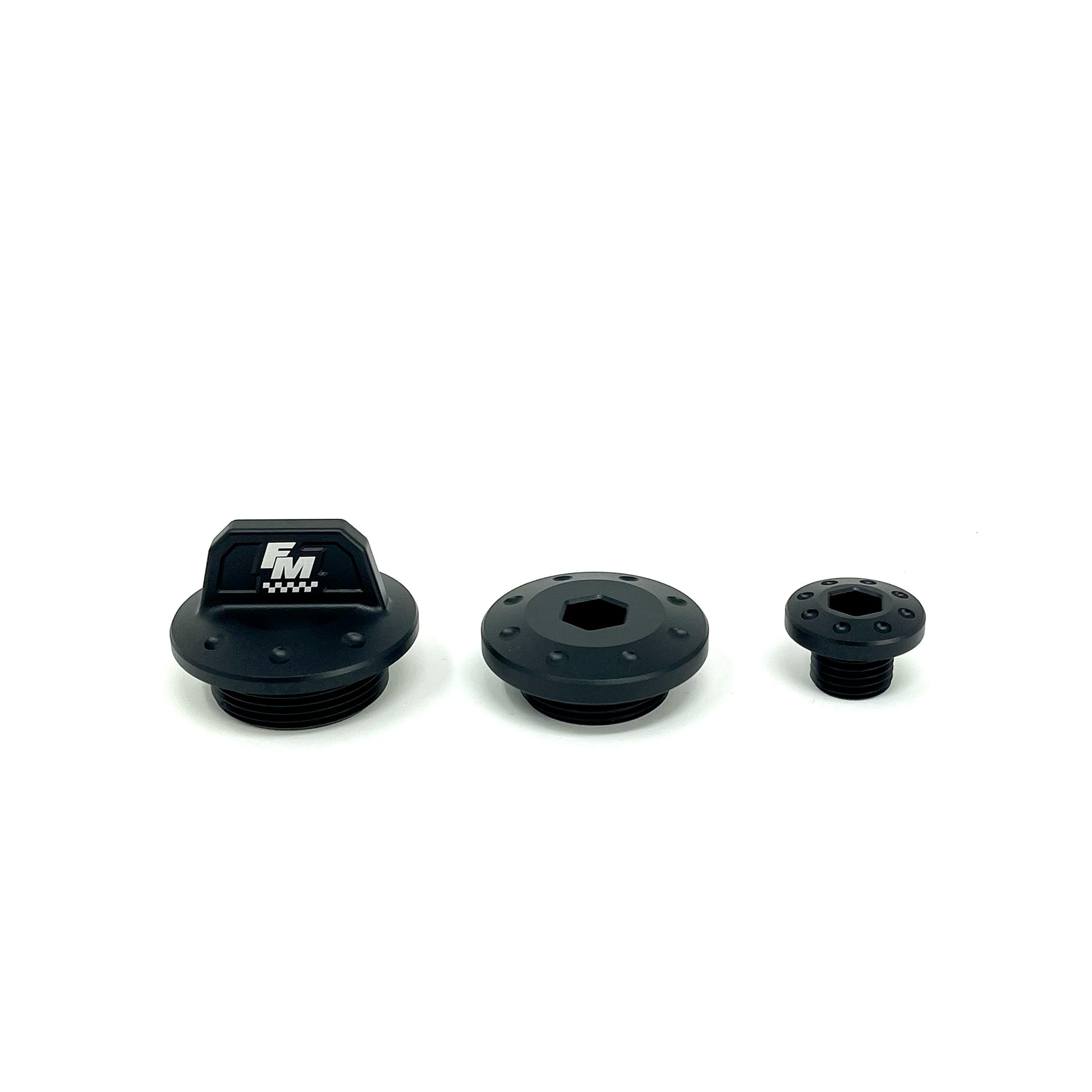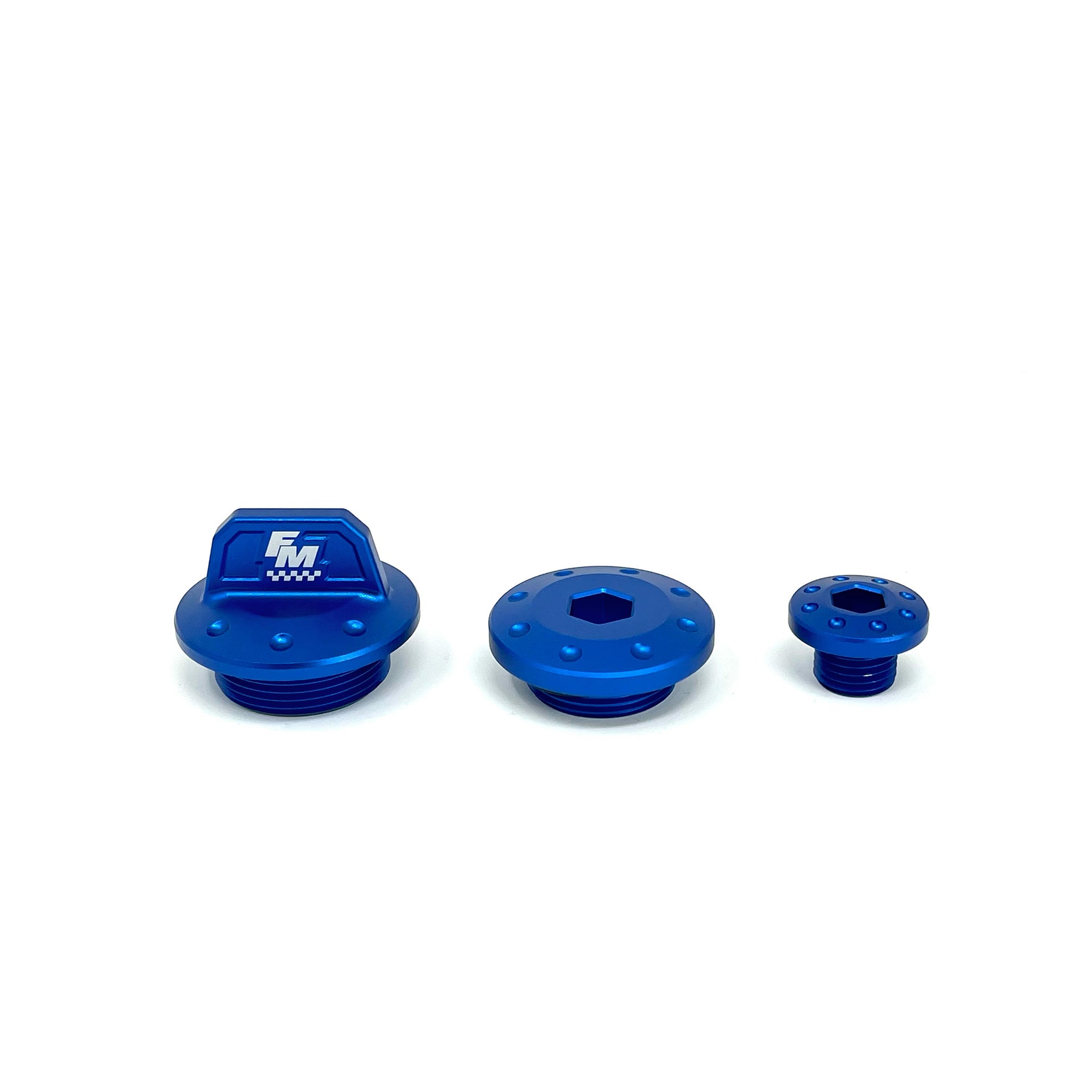 Make a statement with your KLX110 by installing our FM Billet Dress Up Kit. This kit is made from high-quality billet aluminum and features an eye-catching anodized finish that will give your bike a race-inspired look. The kit includes: oil fill cap, an ignition cap, and a timing cap. These pieces are designed to work together to enhance the appearance of your bike and give it a more polished, custom look. Upgrade your ride with the FM Billet Dress Up Kit.