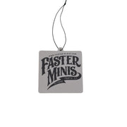 Each air freshener is printed with original Faster Minis artwork and comes ready to hang with a durable cord. Perfect for the cab, garage, toolbox, or anywhere you want a little extra FM style.
