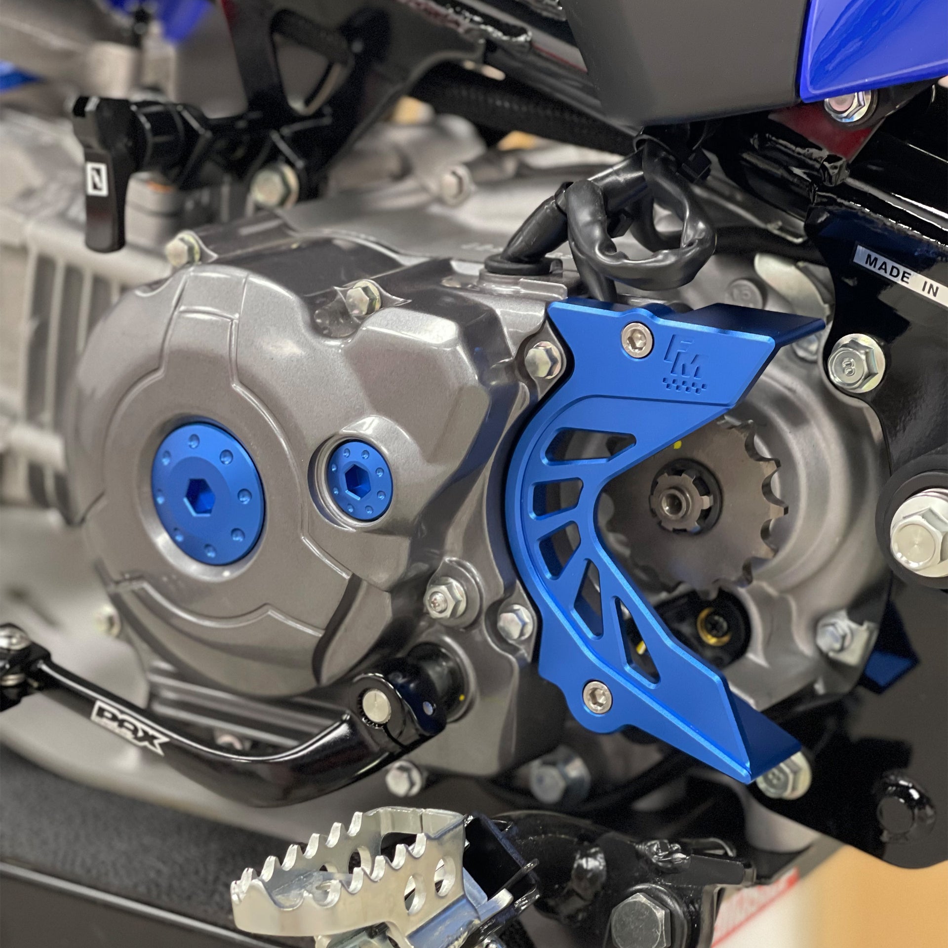 Protect both your bike and yourself with the FM TTR110 Sprocket Guard. Made from high-quality 6061 Billet Aluminum with an anodized finish, this guard will keep your bike safe from rocks and branches while also guarding your boots from snagging the sprocket. Upgrade your TTR110 with the FM Sprocket Guard today.