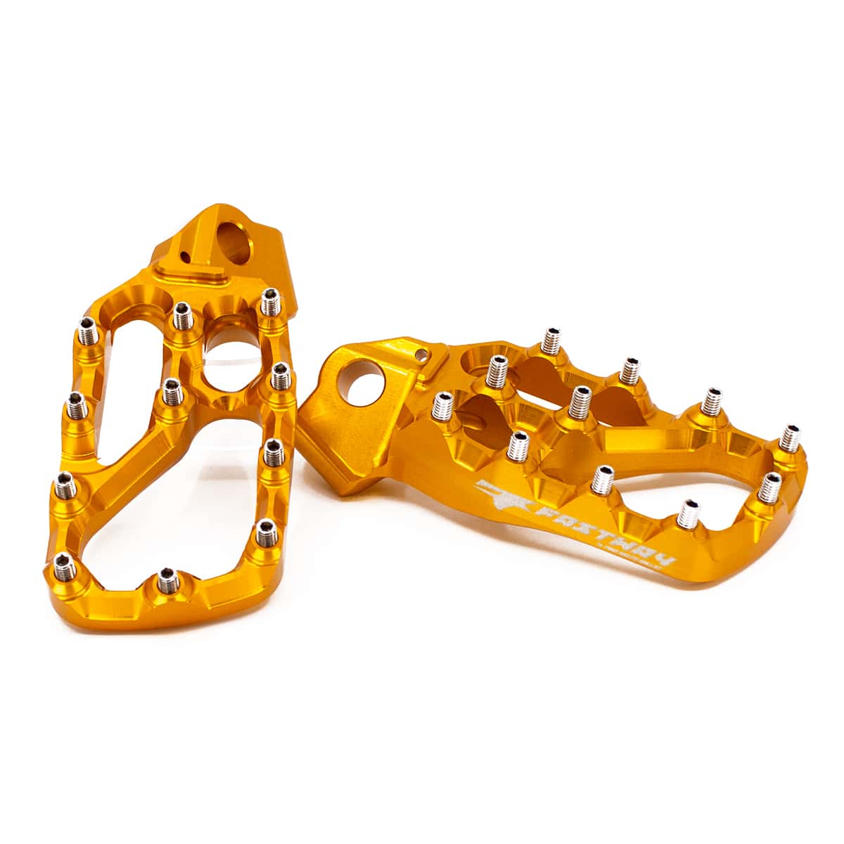 The Fastway Footpegs are light, strong, fully adjustable, and precision engineered for the best ride, every ride! Machined In-House from U.S. Made 2024 billet aluminum which is Stronger and less brittle than 6061 Aluminum. The Fastway Foot Pegs are designed with slanted drafts to shed mud and debris while being ultra-strong. The traction surface has been modified to ensure the rider’s sole rests entirely on the cleats. Offering more available traction due to additional cleat on platform and measuring 2.25” front to back by 4.0” wide means the Fastway Foot Pegs are the perfect balance of size and traction for Motocross, Off-Road, and weekend warriors alike.